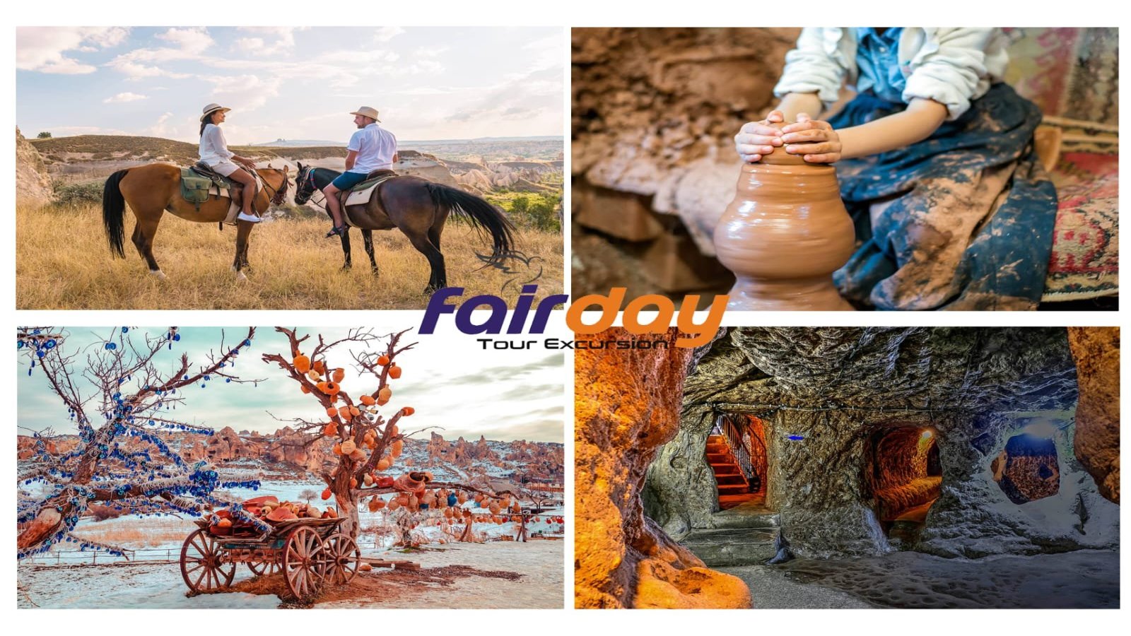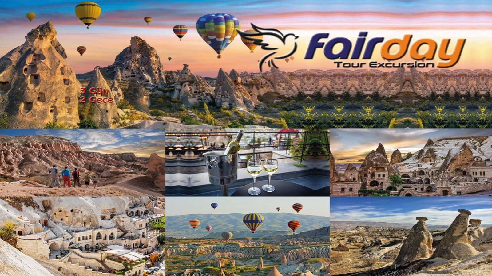 Cappadocia, in central Anatolia, was covered with ash and boulders millions of years ago by the eruptions of the Erciyes and Hassan Dagi volcanoes. The meter-thick layer of ash became tuff and eroded into a bizarre landscape. The harder boulders remain like hats on the tuff columns. And thus form the fairy chimneys. Cappadocia was created by nature. Nature plays a major role in the formation of Cappadocia. An area that may have served as a foregone example for the Flintstones. Here you will find houses, stables and churches all carved out of a relatively soft rock called tuff. There are entire underground cities where about 20,000 people had lived. Cappadocie is on the UNESCO World Heritage List. Because it is unique landscape in the World. if you visit this area,you will find yourself like in another planet. When you walk amongst the fairy chimneys,you will enjoy it very much. Are you ready for a fairytale journey? we have 3 days excursion to cappadocia.